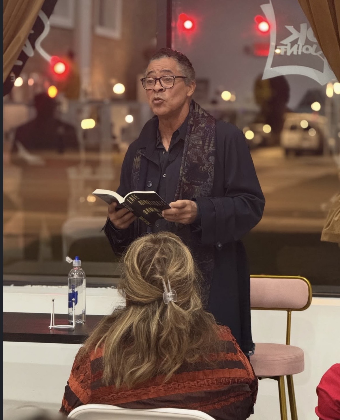 The space inside Da Book Joint was cozy yet buzzing, with people seated closely, leaning in to hear Hoffman speak. The mood felt conversational; more like a small performance than a formal talk. There was a clear sense that everyone there was deeply invested — not just in getting a signed copy, but in engaging with the ideas Hoffman explores in Late Rehearsals.