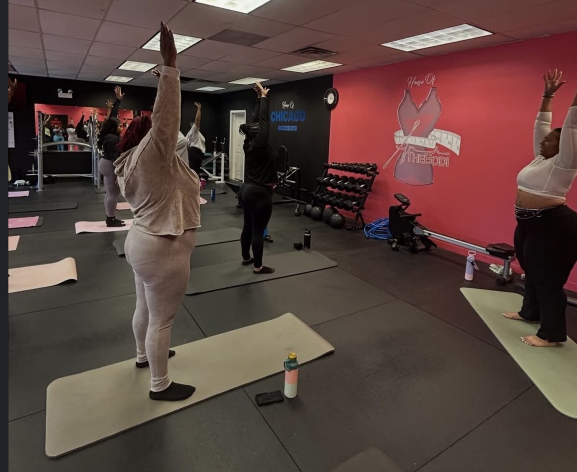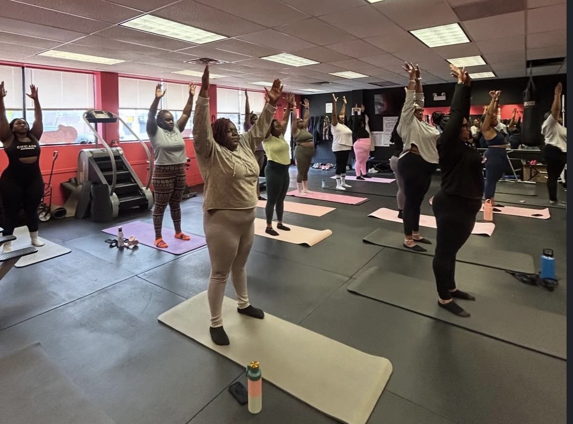 A major anchor for this growing movement is The Bodi Shop, a Black woman–owned gym on the South Side. Jasmine’s group yoga class there has become a consistent monthly offering and has been running for several months. That consistency has helped build trust and routine, turning yoga into a regular wellness practice rather than a one-time experience. By hosting her sessions in a gym setting, she reinforces the connection between strength, recovery, and mobility.
